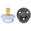 Smart Bibs Schnuller, verkauft im praktischen 2er-Pack in Beige und Blau.