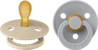 Schöne, niedliche Colour Schnuller von BIBS mit einem symmetrischen Sauger aus Naturkautschuk. Sie haben einen Schild mit drei Belüftungsöffnungen.