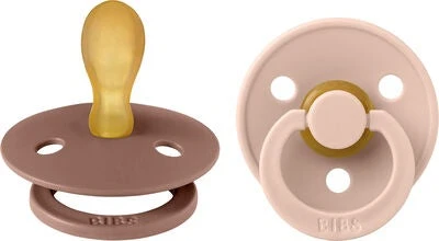 Schöne, niedliche Colour Schnuller von BIBS mit einem symmetrischen Sauger aus Naturkautschuk. Sie haben einen Schild mit drei Belüftungsöffnungen.