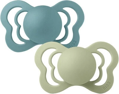 Praktisches Set Schnuller von BIBS mit wunderschönem Schmetterlingsdesign und ergonomischer Form, die sich der Anatomie kleiner Kinder anpasst. Die Schnuller bestehen aus einem weichen Material. Der Schild ist leicht und mit großen Luftlöchern versehen, um die bestmögliche Luftzirkulation um den Mund zu gewährleisten. Dank der Brustwarzenform wird die Belastung auf Kiefer, Zahnfleisch und Zähne Deines Kindes verringert. Die Schnuller sind in Silikon und Naturgummi und in zwei Größen erhältlich.