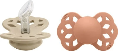 Infinity Schnuller von BIBS mit einem Schild, der so designed ist, dass er reichlich Luft an den Bereich um den Mund lässt, sodass die empfindliche Haut des Babys so gut wie möglich geschont wird.