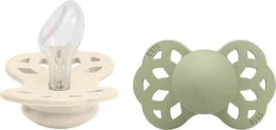 Infinity Schnuller von BIBS mit einem Schild, der so designed ist, dass er reichlich Luft an den Bereich um den Mund lässt, sodass die empfindliche Haut des Babys so gut wie möglich geschont wird.