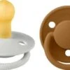 2er-Pack Schnuller von BIBS in Größe 1, die für Kinder von 0 – 6 Monaten geeignet sind. Die Schnuller haben ein zeitloses Design, einen runden Schild und einen beruhigenden Sauger, der dem Kind Geborgenheit vermittelt. Der Sauger besteht aus Naturkautschuk und die Schnuller sind frei von Schadstoffen wie BPA, PVC und Phthalaten.