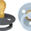 2er-Pack Schnuller von BIBS in Größe 1, die für Kinder von 0 – 6 Monaten geeignet sind. Die Schnuller haben ein zeitloses Design, einen runden Schild und einen beruhigenden Sauger, der dem Kind Geborgenheit vermittelt. Der Sauger besteht aus Naturkautschuk und die Schnuller sind frei von Schadstoffen wie BPA, PVC und Phthalaten.