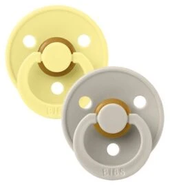2er-Pack Schnuller von BIBS in Größe 1, die für Kinder von 0 – 6 Monaten geeignet sind. Die Schnuller haben ein zeitloses Design, einen runden Schild und einen beruhigenden Sauger, der dem Kind Geborgenheit vermittelt. Der Sauger besteht aus Naturkautschuk und die Schnuller sind frei von Schadstoffen wie BPA, PVC und Phthalaten.