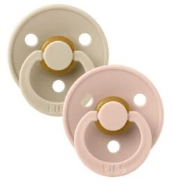 2er-Pack Schnuller von BIBS in Größe 1, die für Kinder von 0 – 6 Monaten geeignet sind. Die Schnuller haben ein zeitloses Design, einen runden Schild und einen beruhigenden Sauger, der dem Kind Geborgenheit vermittelt. Der Sauger besteht aus Naturkautschuk und die Schnuller sind frei von Schadstoffen wie BPA, PVC und Phthalaten.