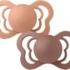 2er-Pack Schnuller von BIBS in Größe 3, die für Kinder ab 8 Monaten geeignet sind. Die Schnuller haben ein zeitloses Design mit einem weißem, im Dunkeln leuchtenden Ring, sodass sie leichter zu finden sind. Sie verfügen über einen runden Schild und einen beruhigenden Sauger, der dem Kind Geborgenheit vermittelt. Der Sauger besteht aus Naturkautschuk und die Schnuller sind frei von Schadstoffen wie BPA, PVC und Phthalaten.