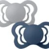 Schnuller im Doppelpack von BIBS. De Lux-Schnuller sind eine überarbeitete Version des Schnuller BIBS Colour. Sie haben einen runden Schild und einen Sauger, der Geborgenheit vermittelt und beruhigend auf Dein Kind wirkt. Auf dem Knauf ist Platz, um den Damen Deines Kindes einzugravieren. Der Sauger wurde aus Latex gefertigt. Die Schnuller sind frei von Schadstoffen wie BPA, PVC und Phthalaten.