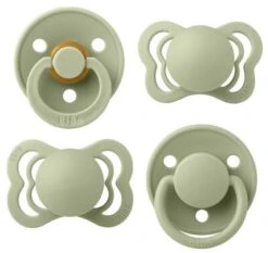 Probierbox mit einem 4er-Pack Schuller in vier verschiedenen Varianten. Teste die unterschiedlichen Schnuller, um herauszufinden, welcher davon am besten für Dein Kind geeignet ist. Das Set enthält Schnuller von BIBS in den Modellen Colour, De Lux, Supreme and Couture mit einer Auswahl runder, symmetrischer und anatomisch geformten Sauger aus Naturkautschuk und Silikon.