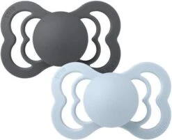 Supreme ist ein praktisches Set Schnuller von BIBS mit wunderschönem Schmetterlingsdesign und ergonomischer Form, die sich der Anatomie kleiner Kinder anpasst. Die Schnuller bestehen aus einem weichen Material. Der Schild ist leicht und mit großen Luftlöchern versehen, um die bestmögliche Luftzirkulation um den Mund zu gewährleisten. Dank der Brustwarzenform wird die Belastung auf Kiefer, Zahnfleisch und Zähne Deines Kindes verringert. Die Schnuller sind in Silikon und Naturgummi und in zwei Größen erhältlich.