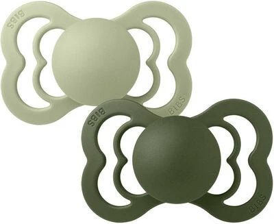Supreme ist ein praktisches Set Schnuller von BIBS mit wunderschönem Schmetterlingsdesign und ergonomischer Form, die sich der Anatomie kleiner Kinder anpasst. Die Schnuller bestehen aus einem weichen Material. Der Schild ist leicht und mit großen Luftlöchern versehen, um die bestmögliche Luftzirkulation um den Mund zu gewährleisten. Dank der Brustwarzenform wird die Belastung auf Kiefer, Zahnfleisch und Zähne Deines Kindes verringert. Die Schnuller sind in Silikon und Naturgummi und in zwei Größen erhältlich.