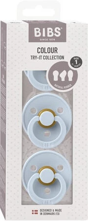 Try-it Colour Schnuller von BIBS mit anatomischen, symmetrischen, runden Saugern. Mit der BIBS Try-it Serie kannst Du den bekannten runden BIBS Colour Schnuller mit verschiedenen Saugern ausprobieren und herausfinden, welcher am besten für Dein Baby ist.