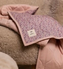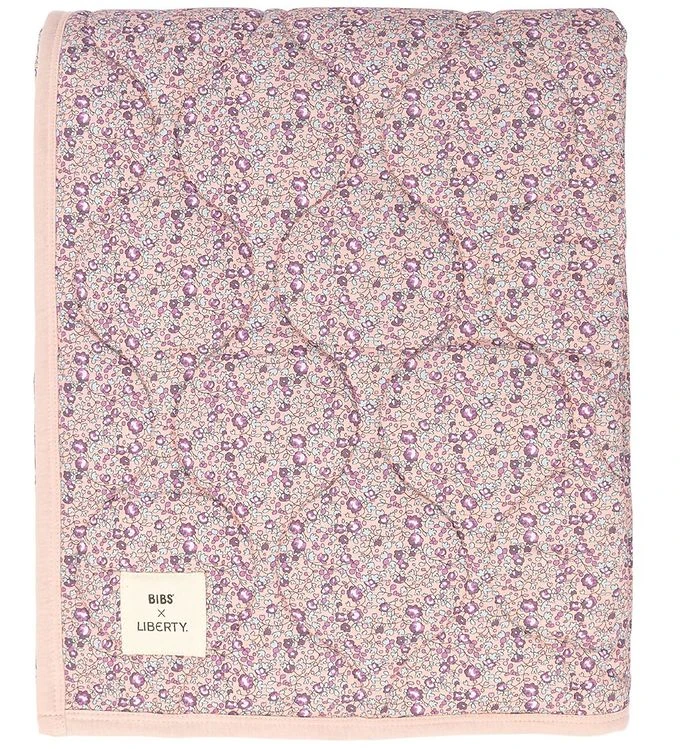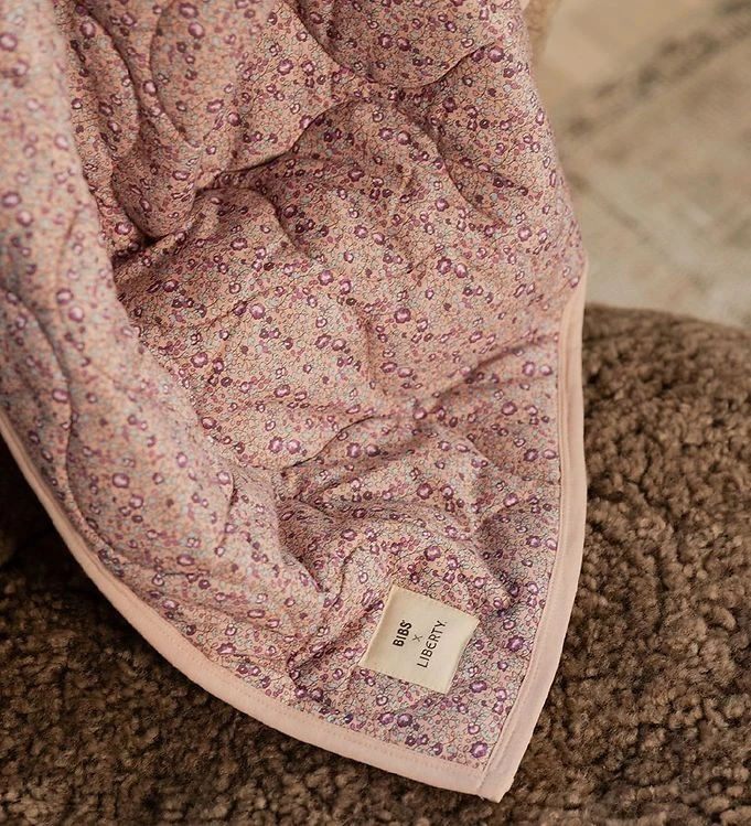 Smart Bibs x Liberty Decke in Pink mit Allover-Print aus kleinen Blumen in Lila und Blau. Der Decke hat eine Schöne gesteppt.
