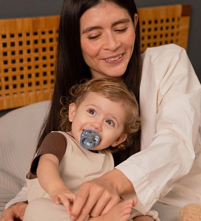 Die Bibs x Liberty Schnuller haben einen runden Schnullerkopf aus Naturgummi. Das Schild des Schnullers ist aus leichtem PP und hat ein kreisrundes und nach außen gerichtetes Design mit praktischen Luftlöchern, so dass Belästigungen durch die feuchte Umgebung und Vakuum auf der Haut des Kindes vermieden werden.