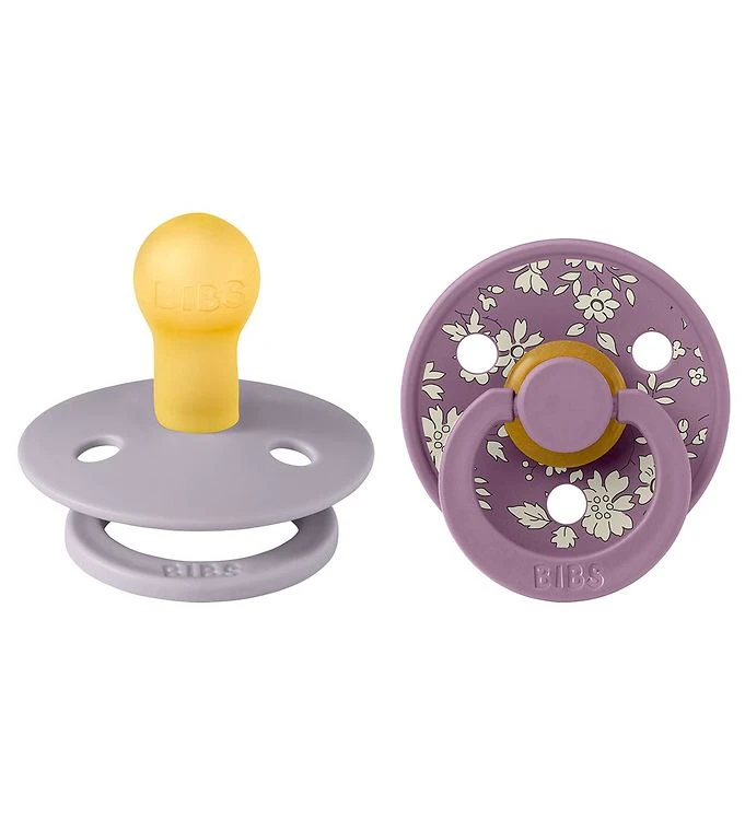 Schöne Bibs x Liberty Schnuller im praktischen 2er-Pack in zwei verschiedenen lila Nuancen mit feinem Print.