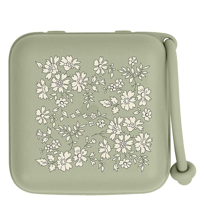 Praktische Bibs x Liberty Schnullerbox in Grün mit feinem, Weiß Print auf der Top.